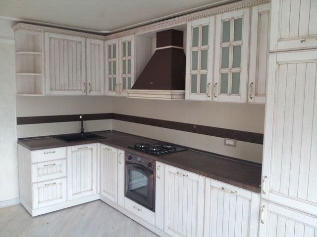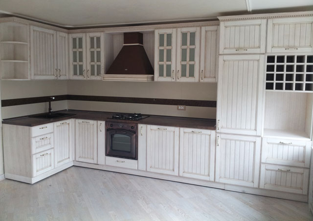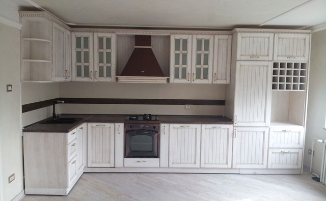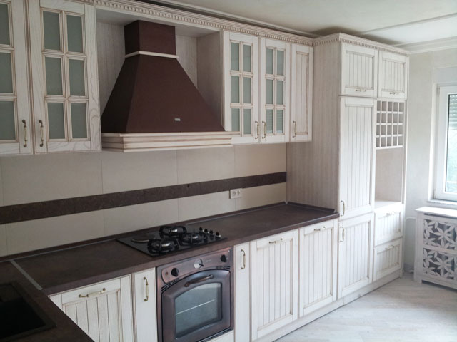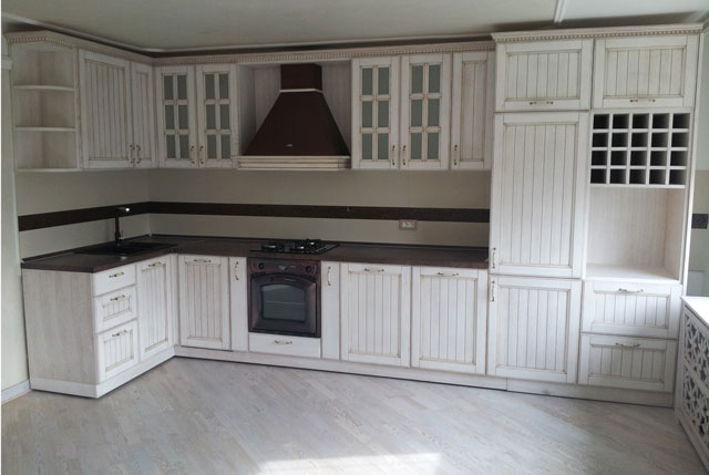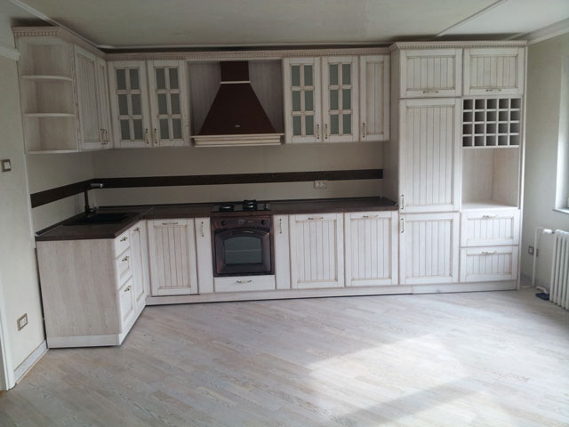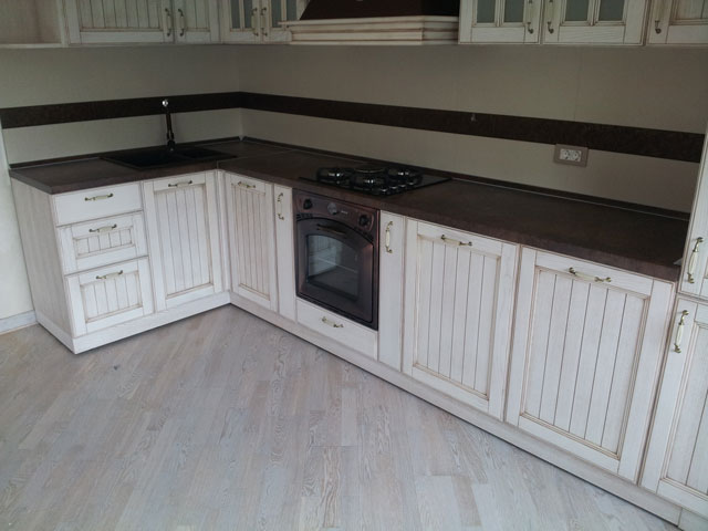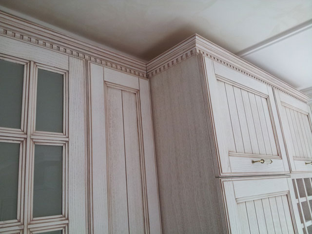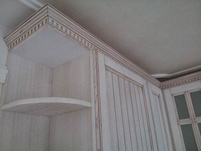 Vrata elemenata su izrađena od beljenog hrast masiva sa patinom.
