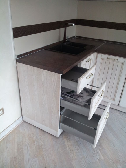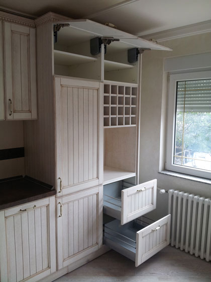 U izradi su korišćeni Grass okovi izuzetnog kvaliteta, funkcionalnosti i trajnosti, fioke Grass Nova Pro izuzetne funkcionalnosti sa usporivačem i bešumnim zatvaranjem, zatim podizni sistemi Grass Kinvaro, šarke Grass Tiomos.