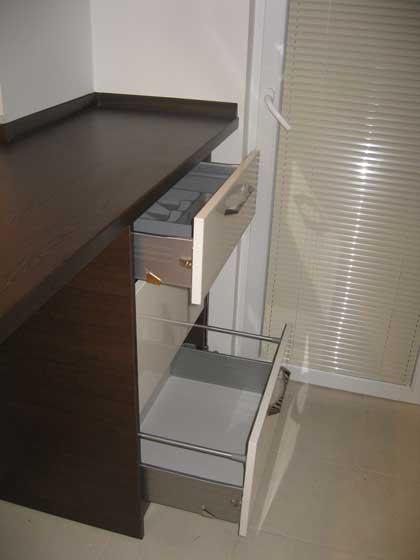 Kuhinja Jasmin je izrađena od medijapana. Fioke su sa metalnim stranicama i sa ugrađenim žičanim elementima kako bi se postigla dugotrajnost i savremenost uz maksimalnu iskoristivost svakog dela unutar kuhinjskih elemenata. Ugrađujemo i rasvetu uz specijalne efekte osvetljenja kako biste dobili zaista poseban ugođaj u vašem domu.